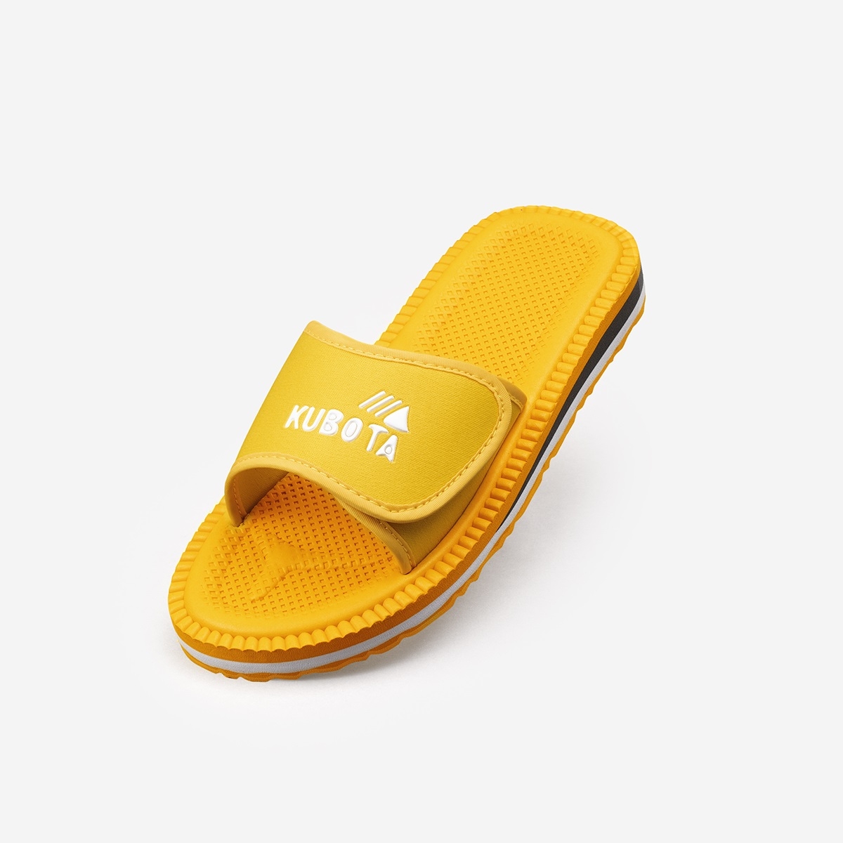 Żółte klapki Kubota Rzep to model nadzwyczajny w pełnym tego słowa znaczeniu. Kolor żółty, będący jedną z bardziej dominujących barw podstawowej ósemki kolorów, może sprawić, że obudzą się w Tobie niewykorzystane pokłady radości życia. A to wszystko dzięki butom!