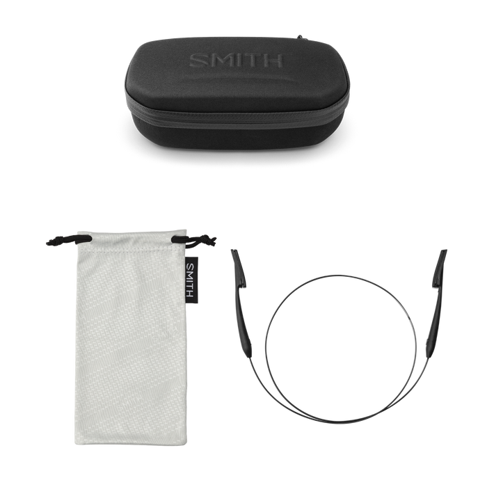 - Twardy futerał Smith, pokrowiec z mikrofibry i zintegrowana/odłączana smycz.